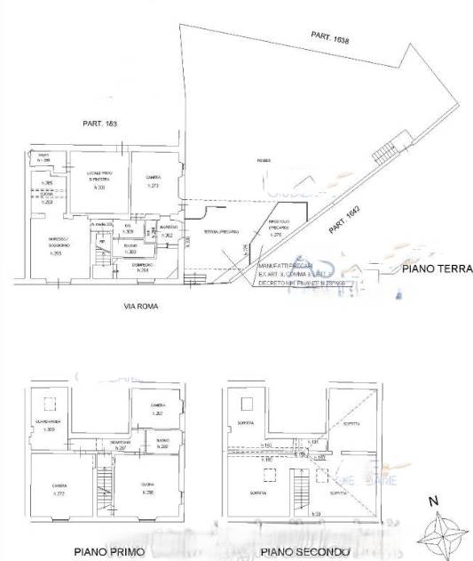 - una terza porzione che si sviluppa sui due piani dell'edificio oltre il piano sottotetto, composta al piano terra da ingresso, ripostiglio, disimpegno, al piano primo da una cucina, due camere, un locale guardaroba, un bagno e un disimpegno mentre al piano secondo da soffitta.