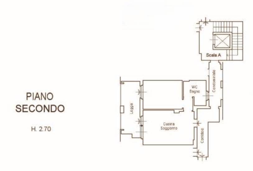 L'accesso avviene tramite, scala o ascensore condominiale, ed al suo interno è composto da due vani utili ossia soggiorno-pranzo con angolo cottura, camera matrimoniale, più disimpegno e servizio igienico oltre a una terrazza accessibile sia dal soggiorno che dalla camera matrimoniale;